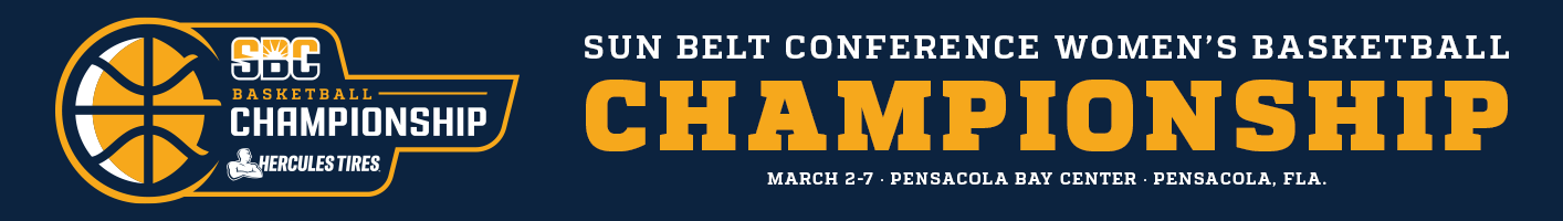 Championship Schedule WEDNESDAY, MARCH 2 G1: Pensacola Bay Center • 11:30 a.m. CT (9) Coastal Carolina 91, (8) Arkansas State 76 StatBroadcast | Recap | Box Score | ESPN+ | Coastal Carolina Press Conference | Arkansas State Press Conference G2: Pensacola Bay Center • 2 p.m. CT (5) Little Rock 61, (12) ULM 56 StatBroadcast | Recap | Box Score | ESPN+ | Little Rock Press Conference | ULM Press Conference G3: Pensacola Bay Center • 5 p.m. CT (6) Texas State 80, (11) South Alabama 66 StatBroadcast | Recap | Box Score | ESPN+ | Texas State Press Conference | South Alabama Press Conference G4: Pensacola Bay Center • 7:30 p.m. CT (7) Georgia Southern 88, (10) Georgia State 79 StatBroadcast | Recap | Box Score | ESPN+ | Georgia Southern Press Conference | Georgia State Press Conference FRIDAY, MARCH 4 G5: Pensacola Bay Center • 11:30 a.m. CT (1) Troy 99, (9) Coastal Carolina 77 StatBroadcast | Recap | Box Score | ESPN+ | Troy Press Conference | Coastal Carolina Press Conference G6: Pensacola Bay Center • 2 p.m. CT (5) Little Rock 70, (4) App State 58 StatBroadcast | Recap | Box Score | ESPN+ | Little Rock Press Conference | App State Press Conference G7: Pensacola Bay Center • 5 p.m. CT (3) Louisiana 71, (6) Texas State 46 StatBroadcast | Recap | Box Score | ESPN+ | Louisiana Press Conference | Texas State Press Conference G8: Pensacola Bay Center • 7:30 p.m. CT (2) UTA 85, (7) Georgia Southern 76 StatBroadcast | Recap | Box Score | ESPN+ | UTA Press Conference | Georgia Southern Press Conference SUNDAY, MARCH 6 G9: Pensacola Bay Center • 11:30 a.m. CT (1) Troy 62, (5) Little Rock 59 StatBroadcast | Recap | Box Score | ESPN+ | Troy Press Conference | Little Rock Press Conference G10: Pensacola Bay Center • 2 p.m. CT (2) UTA 75, (3) Louisiana 65 StatBroadcast | Recap | Box Score | ESPN+ | UTA Press Conference | Louisiana Press Conference MONDAY, MARCH 7 G11: Pensacola Bay Center • 1 p.m. CT (2) UTA 76, (1) Troy 61 StatBroadcast | Recap | Box Score | ESPNU | UTA Press Conference | Troy Press Conference Quick Links Pensacola Bay Center - Info | Directions Purchase Ticket Packages Purchase Single-Game Tickets Dribble Drive Registration Championship Merchandise Visit Pensacola Women's Basketball Home NCAA Women's Basketball Home Sun Belt Tournament Bracket (PDF) Record Book (PDF) Schedule Standings Stats Past Champions Follow the @SunBelt Tweets by the SunBelt