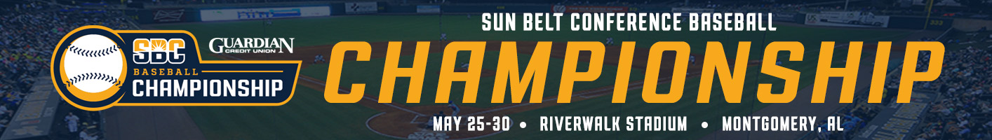 Pool Play Schedule Tuesday, May 25 9:00 AM CT - Pool A - 7 innings #4 West - Little Rock 1 #6 East - Coastal Carolina 15 Box Score Recap 12:30 PM CT - Pool D #3 East - Troy 6 #5 West - Arkansas State 9 Box Score Recap 4:00 PM CT - Pool B #3 West - ULM 6 #5 East - Georgia State 9 Box Score Recap 7:30 PM CT - Pool C #4 East - App State 1 #6 West - Texas State 0 Box Score Recap Wednesday, May 26 11:00 AM CT - Pool A #1 East - South Alabama 14 #6 East - Coastal Carolina 7 Box Score Recap 3:00 PM CT - Pool B #2 East - Georgia Southern 10 #5 East - Georgia State 1 Box Score Recap 7:00 PM CT - Pool C #1 West - Louisiana 12 #6 West - Texas State 6 Box Score Recap Thursday, May 27 11:00 AM CT - Pool A #1 East - South Alabama 6 #4 West - Little Rock 2 Box Score Recap 3:00 PM CT - Pool D #2 West - UTA 8 #5 West - Arkansas State 3 Box Score Recap 7:00 PM CT - Pool C #1 West - Louisiana 7 #4 East - App State 2 Box Score Recap Friday, May 28 10:00 AM CT - Pool D #2 West - UTA 11 #3 East - Troy 5 Box Score Recap 1:30 PM CT - Pool B #2 East - Georgia Southern 9 #3 West - ULM 5 Box Score Recap Bracket Play Schedule Saturday, May 29 - Semifinals S1: 12:00 PM CT South Alabama 5 UTA 4 Box Score Recap S2: 4:00 PM CT - 11 innings Georgia Southern 3 Louisiana 2 Box Score Recap Sunday, May 30 - Championship 1:00 PM CT South Alabama 10 Georgia Southern 4 Box Score Recap Quick Links Baseball Home NCAA Baseball Home Riverwalk Stadium - Home to the Montgomery Biscuits Championship Store Purchase Tickets Request Media Credentials Championship Bracket Schedule Standings Stats Record Book Riverwalk Stadium Follow the #SunBeltBB Tweets by the SunBelt