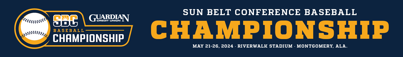 Championship Schedule | Purchase Tickets TUESDAY, MAY 21 G1: Riverwalk Stadium • 3:00 p.m. CT No. 7 Seed Coastal Carolina def. No. 10 Seed Georgia State, 5-1 - Single Elimination Live Stats | Recap | ESPN+ | Quotes | Coastal Carolina Press Conference | Georgia State Press Conference G2: Riverwalk Stadium • 6:30 p.m. CT No. 8 Seed Old Dominion def. No. 9 Seed South Alabama, 3-2 - Single Elimination Live Stats | Recap | ESPN+ | Quotes | Old Dominion Press Conference | South Alabama Press Conference WEDNESDAY, MAY 22 G3: Riverwalk Stadium • 9:00 a.m. CT No. 3 Seed Troy def. No. 6 Seed App State, 6-5 Live Stats | Recap | ESPN+ | Quotes | Troy Press Conference | App State Press Conference G4: Riverwalk Stadium • 12:30 p.m. CT No. 2 Seed Southern Miss def. No. 7 Seed Coastal Carolina, 5-0 Live Stats | Recap | ESPN+ | Quotes | Southern Miss Press Conference G5: Riverwalk Stadium • 4:00 p.m. CT No. 8 Seed Old Dominion def. No. 1 Louisiana, 7-3 Live Stats | Recap | ESPN+ | Quotes | Old Dominion Press Conference | Louisiana Press Conference G6: Riverwalk Stadium • 7:30 p.m. CT No. 5 Seed Georgia Southern def. No. 4 Seed James Madison, 12-4 Live Stats | Recap | ESPN+ | Quotes | Georgia Southern Press Conference | James Madison Press Conference THURSDAY, MAY 23 G7: Riverwalk Stadium • 9:00 a.m. CT No. 6 Seed App State def. No. 7 Coastal Carolina, 6-3 Live Stats | Recap | ESPN+ | Quotes | App State Press Conference | Coastal Carolina Press Conference G8: Riverwalk Stadium • 12:30 p.m. CT No. 4 Seed James Madison def. No. 1 Seed Louisiana, 10-9 Live Stats | Recap | ESPN+ | Quotes | James Madison Press Conference | Louisiana Press Conference G9: Riverwalk Stadium • 4:00 p.m. CT No. 2 Seed Southern Miss def. No. 3 Troy, 6-5 Live Stats | Recap | ESPN+ | Quotes | Southern Miss Press Conference | Troy Press Conference G10: Riverwalk Stadium • 7:30 p.m. CT No. 5 Seed Georgia Southern def. No. 8 Seed Old Dominion, 8-6 Live Stats | Recap | ESPN+ | Quotes | Georgia Southern Press Conference | Old Dominion Press Conference FRIDAY, MAY 24 G11: Riverwalk Stadium • 3:00 p.m. CT No. 6 Seed App State def. No. 3 Seed Troy, 10-6 Live Stats | Recap | ESPN+ | Quotes | App State Press Conference | Troy Press Conference G12: Riverwalk Stadium • 6:30 p.m. CT No. 4 Seed James Madison def. No. 8 Seed Old Dominion, 15-5 (8 inn.) Live Stats | Recap | ESPN+ | Quotes | James Madison Press Conference | Old Dominion Press Conference SATURDAY, MAY 25 G13: Riverwalk Stadium • 9:00 a.m. CT No. 2 Seed Southern Miss def. No. 6 Seed App State, 7-5 Live Stats | Recap | ESPN+ | Quotes | Southern Miss Press Conference | App State Press Conference G14: Riverwalk Stadium • 9:48 p.m. CT No. 5 Seed Georgia Southern def. No. 4 Seed James Madison, 7-1 Live Stats | Recap | ESPN+ | Quotes | Georgia Southern Press Conference | James Madison Press Conference Sunday, MAY 26 Championship Game: Riverwalk Stadium • 1 p.m. CT No. 2 Seed Southern Miss def. No. 5 Seed Georgia Southern, 14-11 Live Stats | Recap | ESPN+ | Quotes | Southern Miss Press Conference | Georgia Southern Press Conference Quick Links Baseball Home NCAA Baseball Home Riverwalk Stadium - Home to the Montgomery Biscuits Experience Montgomery Championship Tickets Media Credential Requests Championship Store Championship Bracket (PDF) Schedule Standings Stats Record Book Riverwalk Stadium Follow the #SunBeltBSB Tweets by the SunBelt