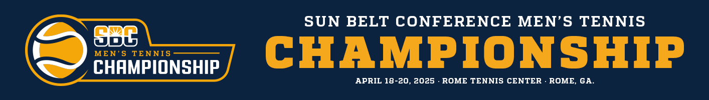 Championship Schedule Friday, April 18 - Quarterfinals Match 1: 10:00 AM ET (1) Old Dominion 4, (8) James Madison 0 Live Results | Recap | Box Score | ESPN+ | Photo Gallery Match 2: 10:00 AM ET (4) Troy 4, (5) Louisiana 3 Live Results | Recap | Box Score | ESPN+ | Photo Gallery Match 3: 2:00 PM ET (2) Georgia Southern 4, (7) Georgia State 0 Live Results | Recap | Box Score | ESPN+ | Photo Gallery Match 4: 2:00 PM ET (6) Coastal Carolina 4, (3) South Alabama 3 Live Results | Recap | Box Score | ESPN+ | Photo Gallery Saturday, April 19 - Semifinals Match 5: 10:00 AM ET (1) Old Dominion 4, (4) Troy 2 Live Results | Recap | Box Score | ESPN+ | Photo Gallery Match 6: 2:00 PM ET (2) Georgia Southern 4, (6) Coastal Carolina 0 Live Results | Recap | Box Score | ESPN+ | Photo Gallery Sunday, April 20 - Championship Match 7: 1:00 PM ET (1) Old Dominion 4, (2) Georgia Southern 2 Live Results | Recap | Box Score | ESPN+ | Photo Gallery Quick Links Men's Tennis Home NCAA Men's Tennis Home Live Results through iOnCourt 2025 Standings 2025 Men's Tennis Bracket Championship Store Follow the #SunBeltMTEN
